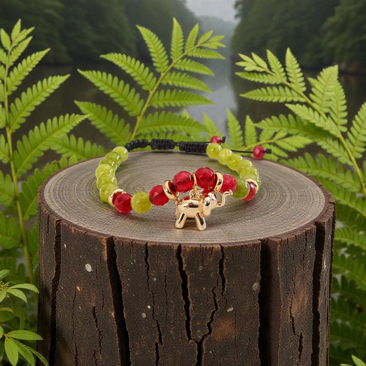 Compoziția de Jad verde și Jad roșu creează un echilibru armonios între creștere, vitalitate și optimism. Energia pietrelor susține atragerea norocului, starea de bine și manifestarea abundenței într-un mod natural și relaxat.